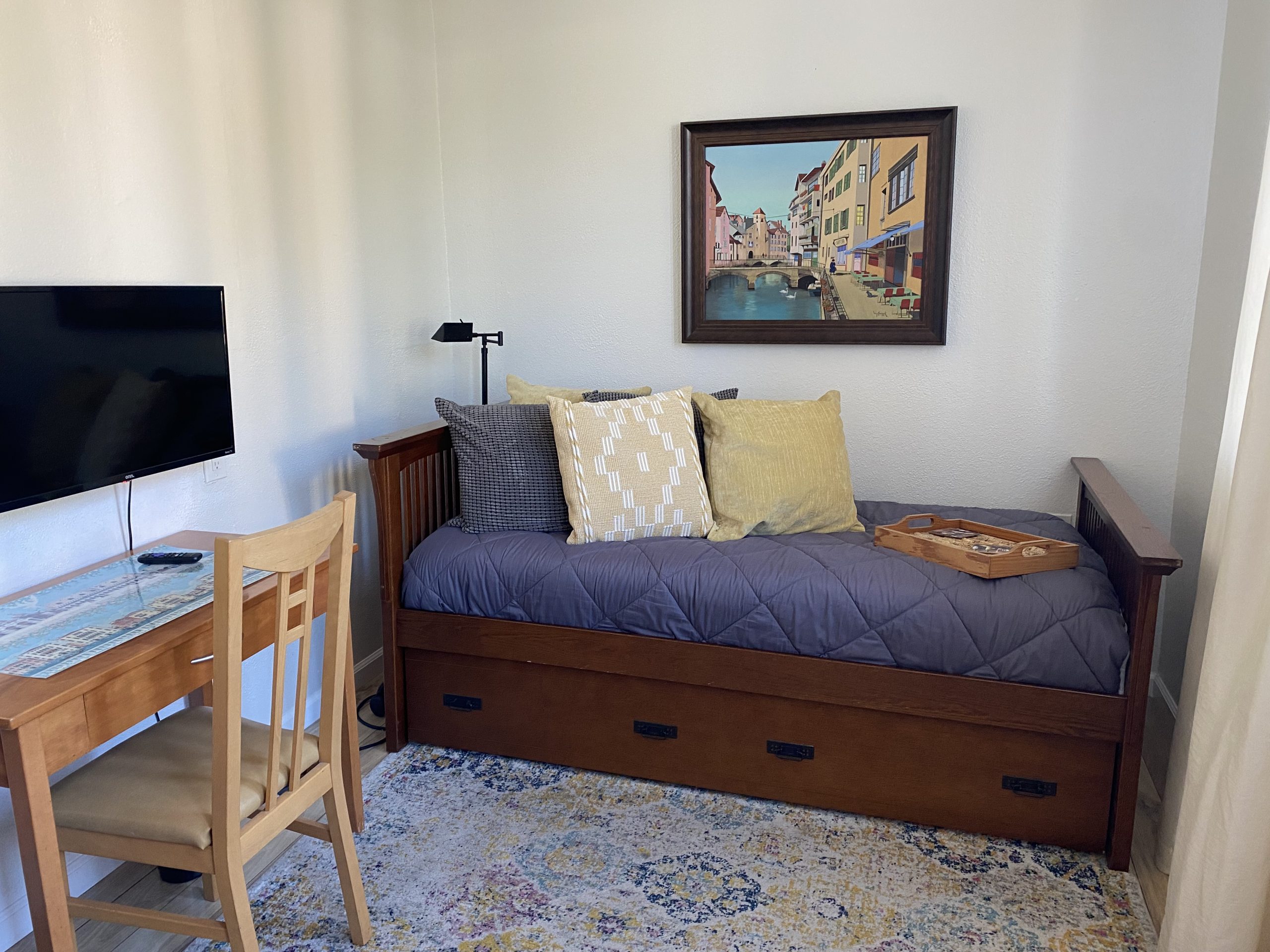 Experience European style accommodations in this 37 sq meter flat on California’s beautiful Central Coast. Located in the heart of wine country and only two miles from the Morro Bay estuary, a bird sanctuary. It is a short drive to Morro Bay where you can rent kayaks or go whale watching. There are many trails for all levels of hikers or just for a stroll along the amazing coastline or in the surrounding hills. You can end the day with a glass of local wine sitting around the fire pit and planning your next day’s adventures.